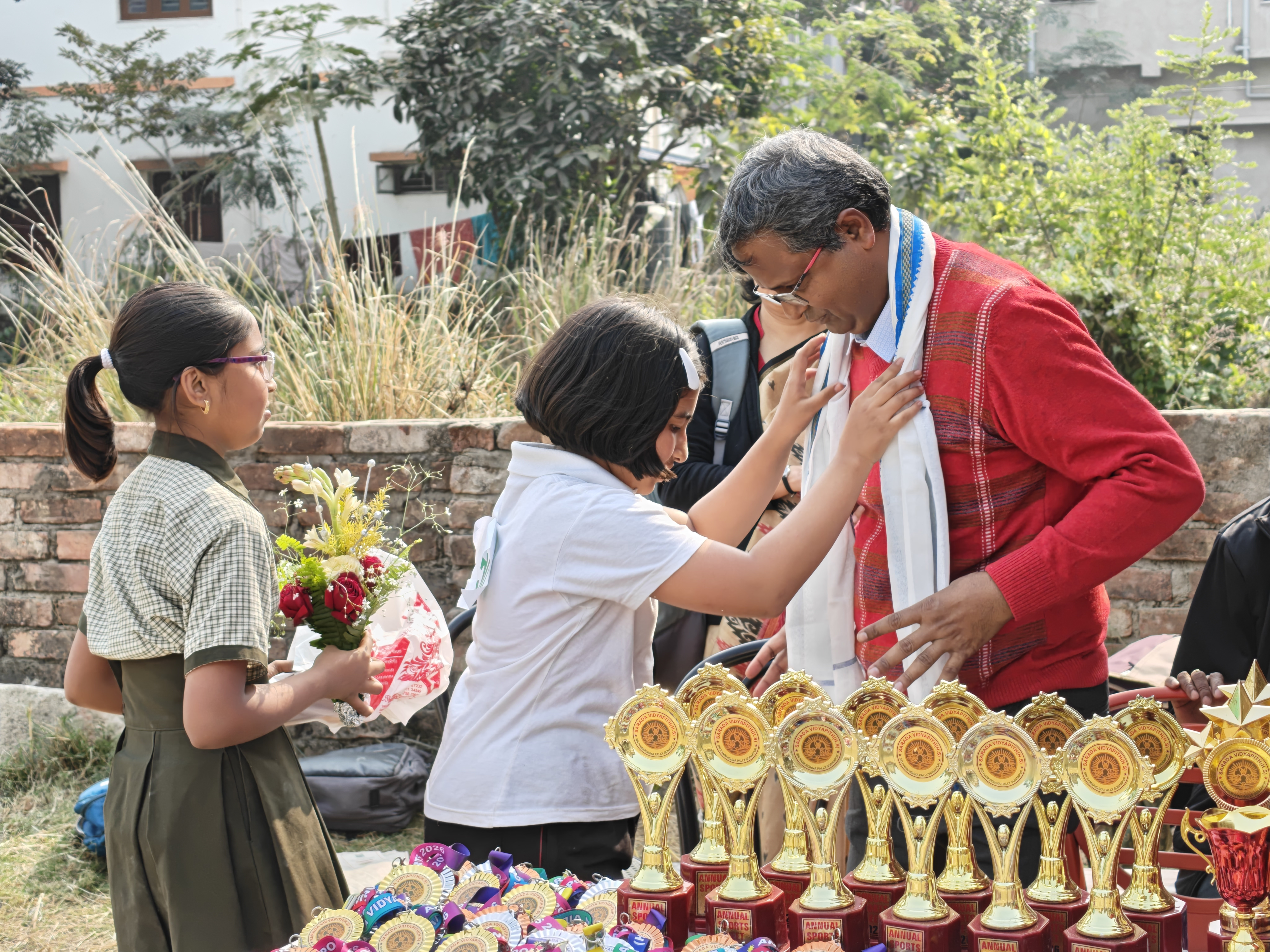 The journey of 'Sarada Vidyapith' began on 1 May, 1995. The instituition made its glorious start adopting the ideologies of Swami Vivekananda and was baptized accordingly after the Holy Mother, Ma Sarada Devi's name. The new born instituition was bold enough to set off with only ten students of class V run by the Ashrama Praktan Chhatra Sangha, Narendrapur. My personal as well as official attachment with the Vidyapith dates back to 1998. At that time, the school was just a child of three years. But shortly after, it took to adding one class each year and it took up the mould of a complete Madhyamik Institute in the academic session 2000-2001.